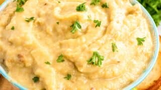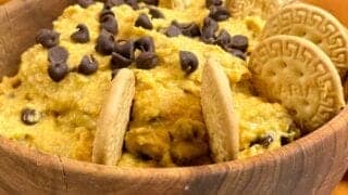 This pumpkin cookie dough dip recipe is the perfect way to celebrate Fall. Chickpeas are the secret ingredient in this healthy and delicious dip. Serve with apple slices, pretzels, or graham crackers for a tasty snack.