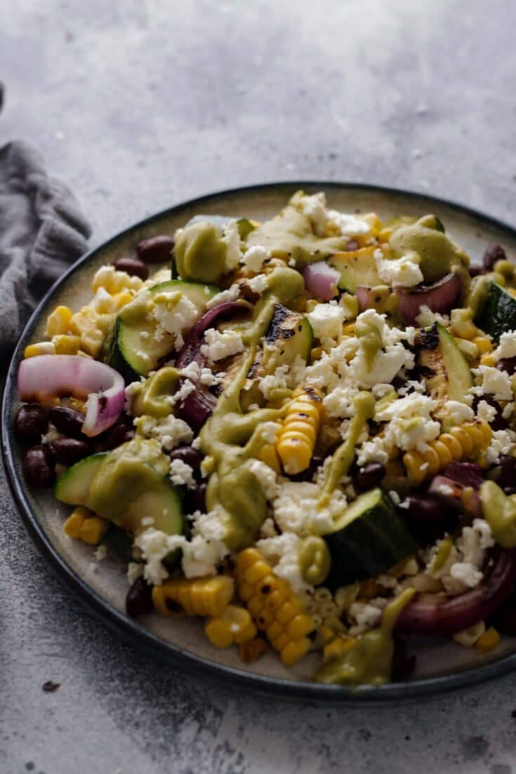Grilled Corn and Black Bean Salad with Zucchini is a smoky, tasty dish that’s great for summer get-togethers. The grilled corn and fresh zucchini go perfectly with the hearty black beans and a zesty dressing, making it a refreshing and wholesome salad.