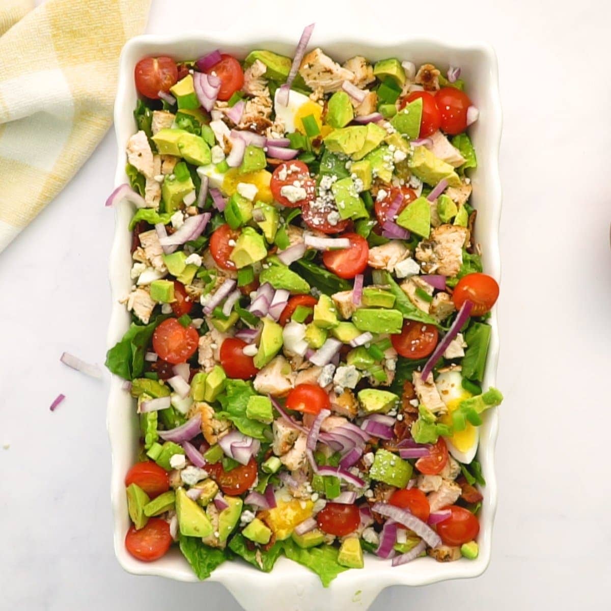 This Easy Cobb Salad Recipe with Homemade Dressing is a classic that's super simple to whip up and seriously satisfying. With crispy bacon, hard-boiled eggs, avocado, and a creamy dressing, it’s perfect for lunch or dinner!
