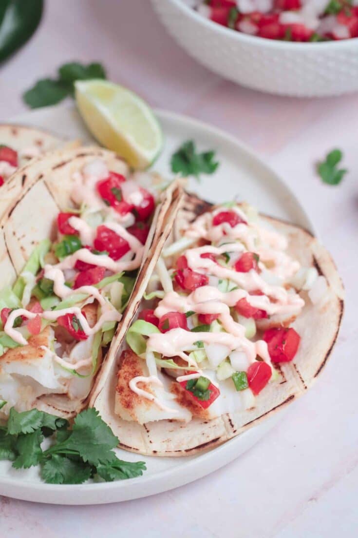 Fish tacos with cilantro lime slaw are a super tasty and easy option for a quick, flavorful meal. The seasoned, tender fish goes perfectly with the crisp and tangy slaw, making a dish that's packed with fresh, bold flavors.