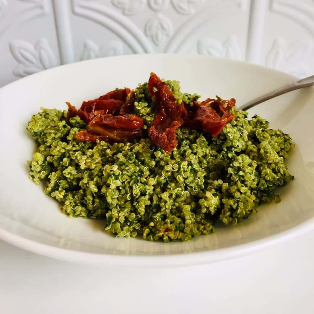 Pesto Quinoa is super easy to make and perfect for busy weeknights. It’s great with roasted veggies, grilled chicken, or even on its own as a filling meal!