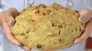 Nothing beats the aroma and smell of a fresh bread baking in your kitchen! No Knead Dutch Oven Raisin Walnut Bread is no Exception! This no-knead whole wheat bread is perfectly crusty on the outside, with a fluffy, nutty interior that’s just begging for some creamy butter. Try it with your breakfast! The easiest artisan bread you will ever make!