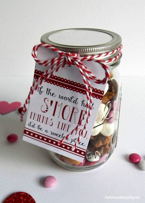 Celebrate Valentine's Day with a sweet and thoughtful gift idea - Easy S’mores Valentine Gift in a Mason Jar. This DIY gift is perfect for your significant other, family, or friends. Complete the gift with our free printable tags and labels to add an extra touch of love.