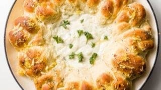 As fancy as this bread wreath with Gorgonzola dip looks, this is an extremely low-risk recipe. It is fast and easy to make – and when is bread and cheese ever not a crowd-pleaser?!