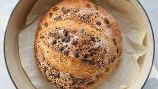 A basic sourdough bread requiring minimal effort. This no knead recipe is a great intro to baking sourdough bread from scratch.